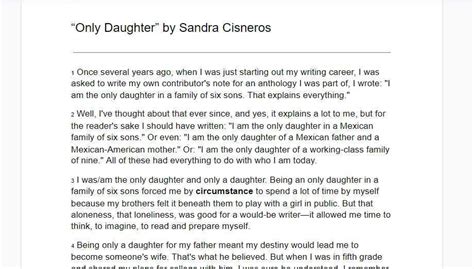 Read Only Daughter By Sandra Cisneros Answers Epub